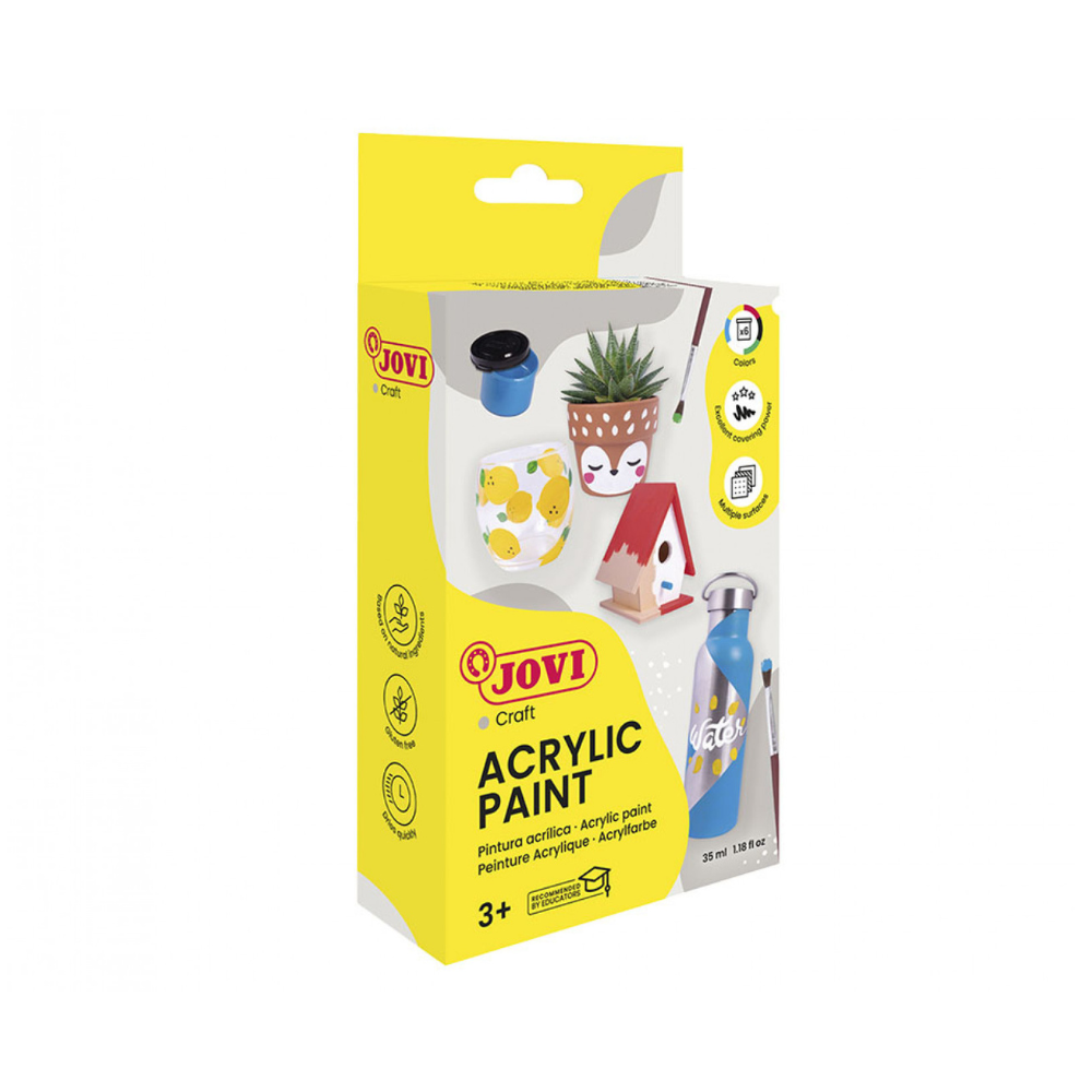 Peinture acrylique set 6 pots 35ml couleurs assorties + 1 pinceau