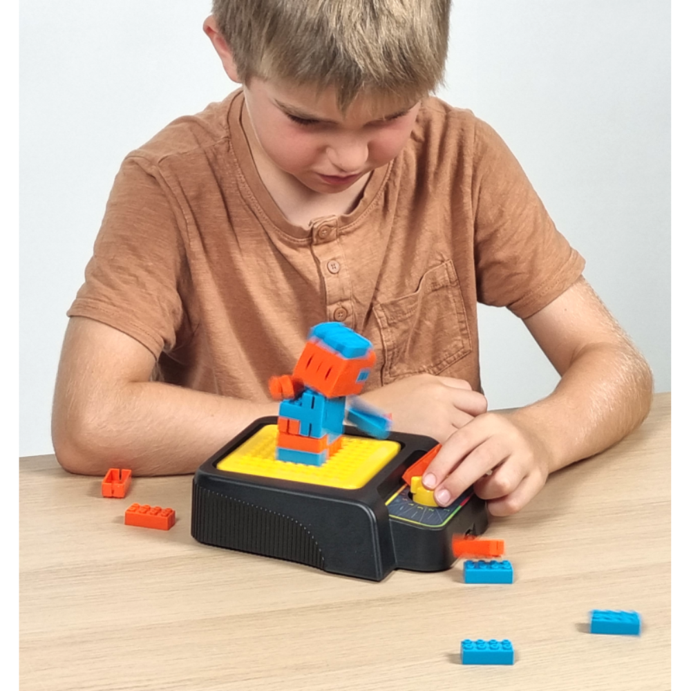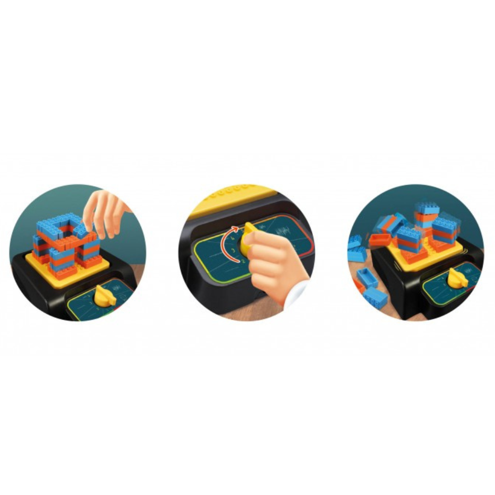 Avec le simulateur de tremblement de terre, vous pouvez construire des bâtiments à l'aide des briques fournies et les soumettre aux vibrations de la base motorisée, qui reproduit différents niveaux d'intensité.