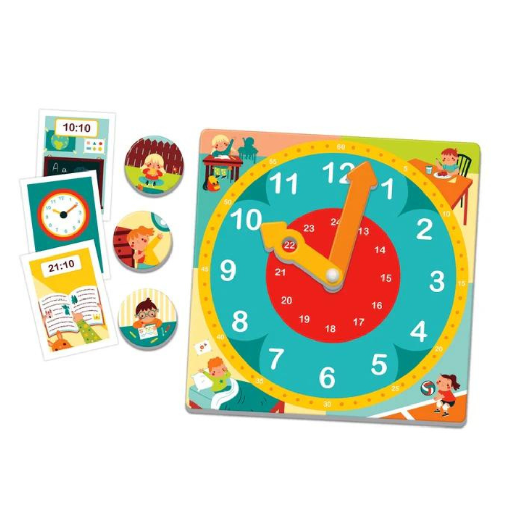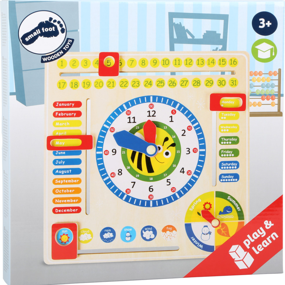 Tableau éducatif Date, heure et saisons, en anglais