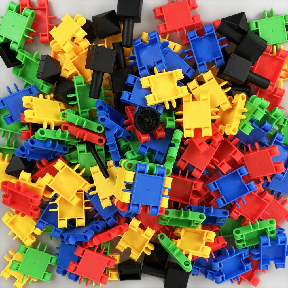 Briques à empiler, jeux à clipser, à encastrer ou visser, jeux magnétiques, circuits à billes, engrenages et jeux de construction géants pour enfant.