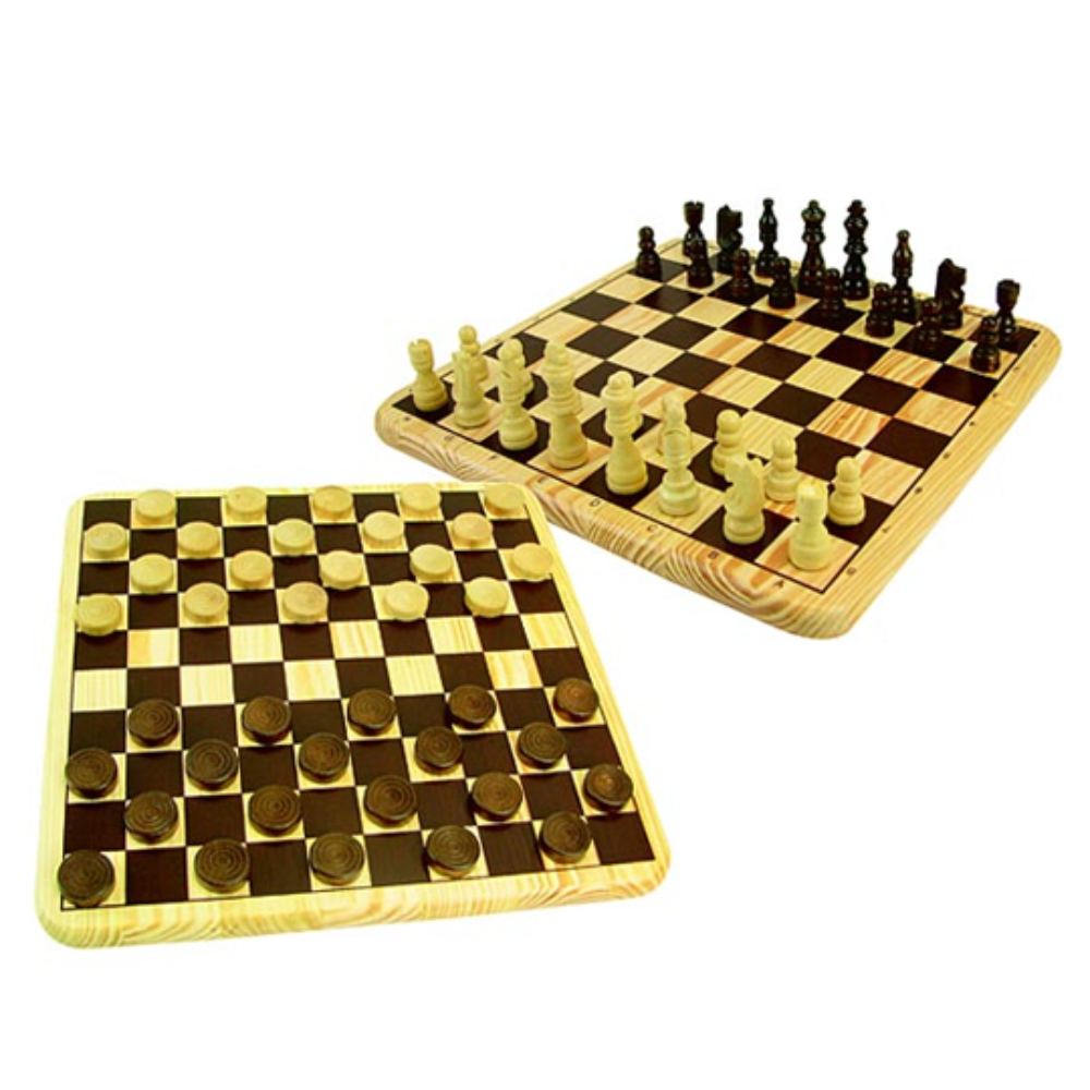 Jeu d'échecs et de dames avec plateau en bois