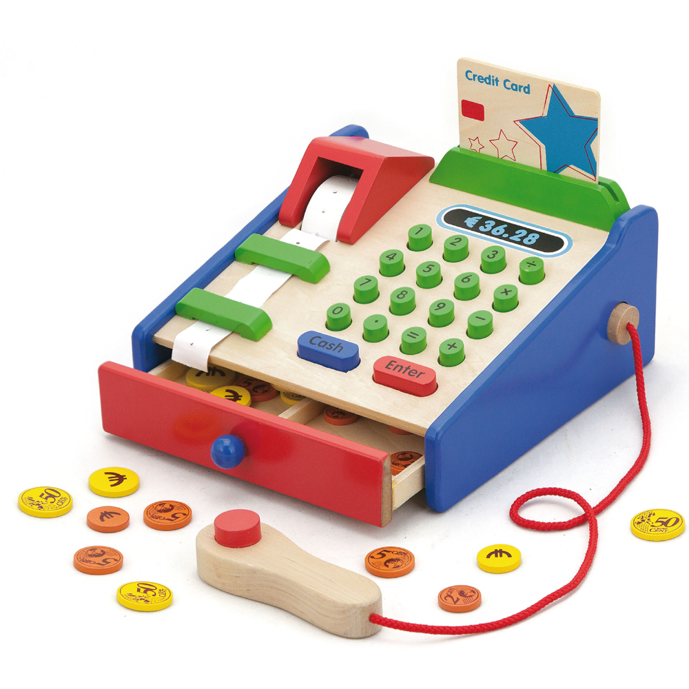 Caisse enregistreuse en bois avec accessoires