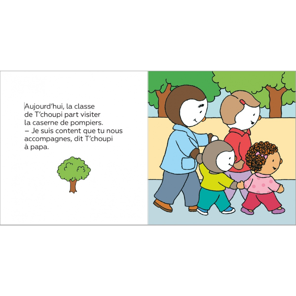 Aujourd’hui, T’choupi et sa classe vont visiter la caserne des pompiers.