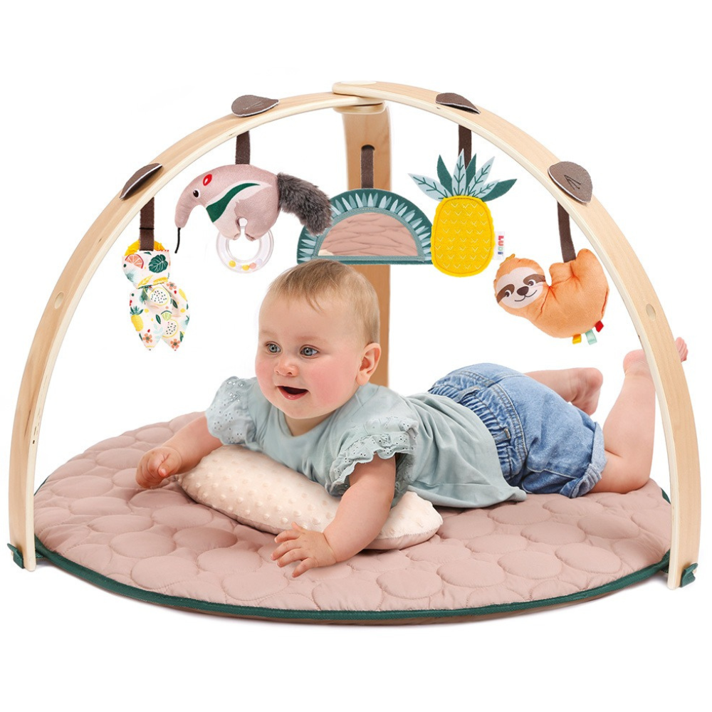 Le coussin ventral inclus accompagne Bébé lors des phases sur le ventre, favorisant le renforcement musculaire et la motricité libre. En grandissant, les arches se retirent pour laisser place à un espace de jeu ouvert.