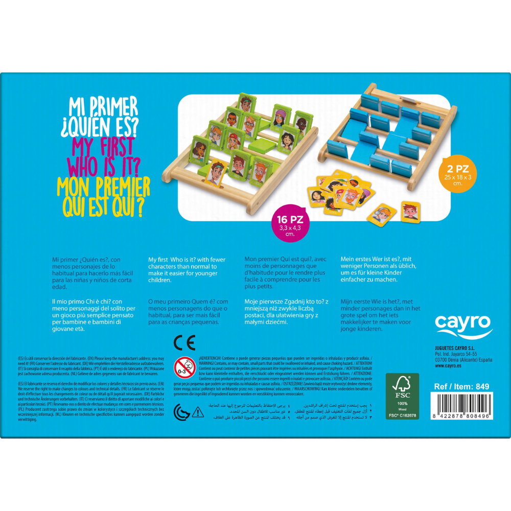 Conçu à partir de 3 ans, il permet à 2 joueurs d’affronter leurs talents d’enquêteur : chacun choisit un plateau, installe ses personnages face à lui et pioche une carte mystère ; à travers des questions simples (« a-t-il les cheveux blonds ? Porte-t-il des lunettes ? »), chaque joueur élimine des personnages jusqu’à deviner qui est le secret caché.