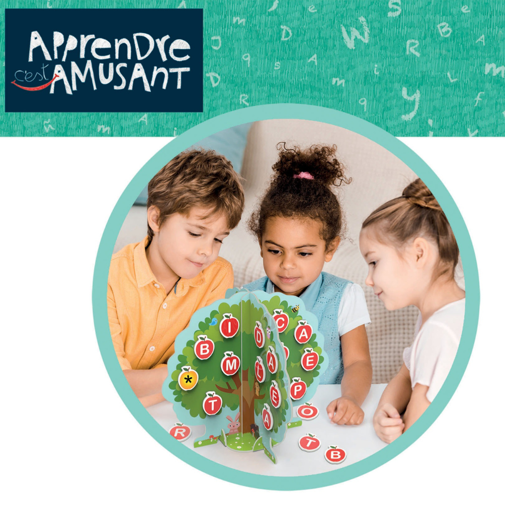Contenu : 1 arbre 3D, 86 pommes en carton, 48 cartes de mots, instructions.