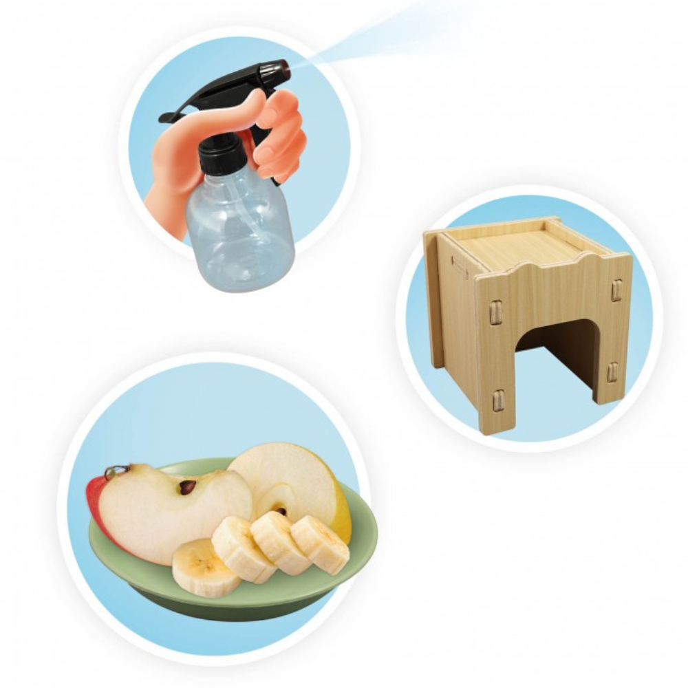 Grâce au spray à eau inclus, il peut brumiser et humidifier l’habitat pour reproduire un environnement idéal, tout en développant son sens de l’observation et du soin aux êtres vivants.