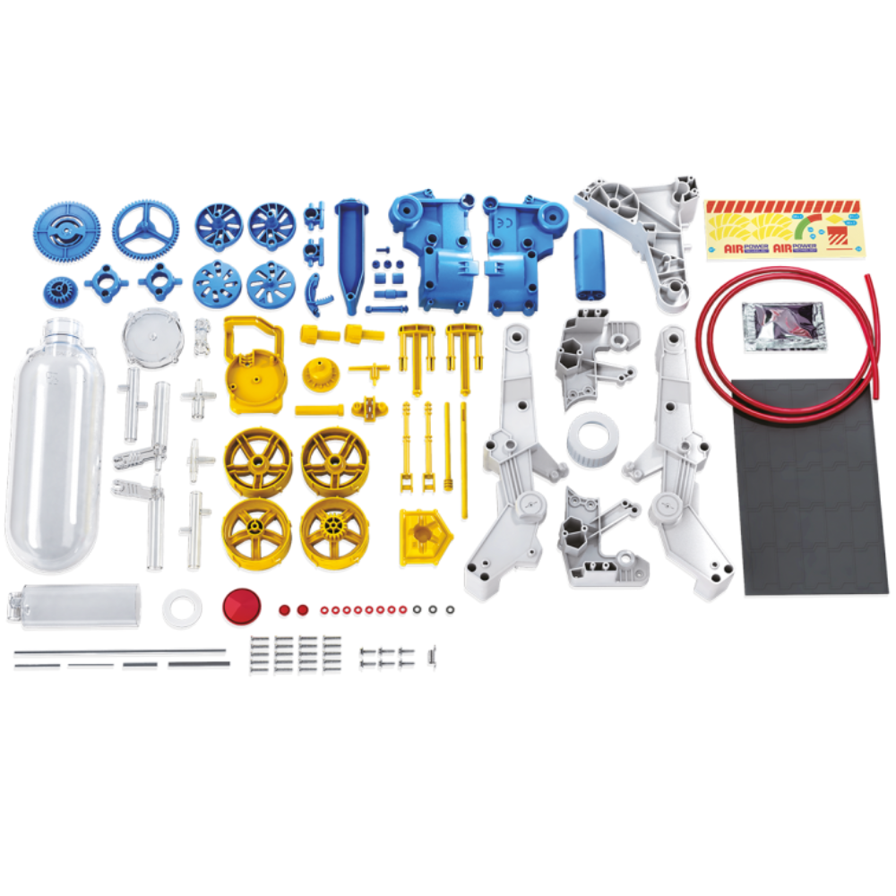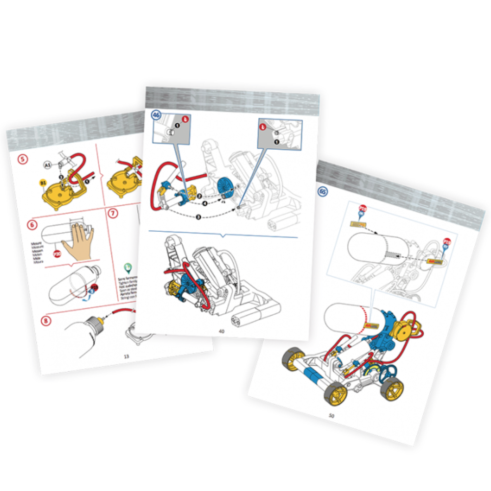 Assemblez les pièces et construisez un véhicule propulsé par air comprimé.