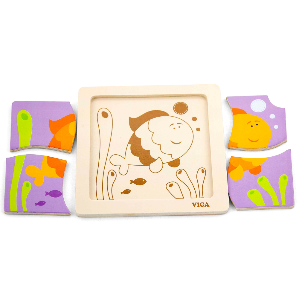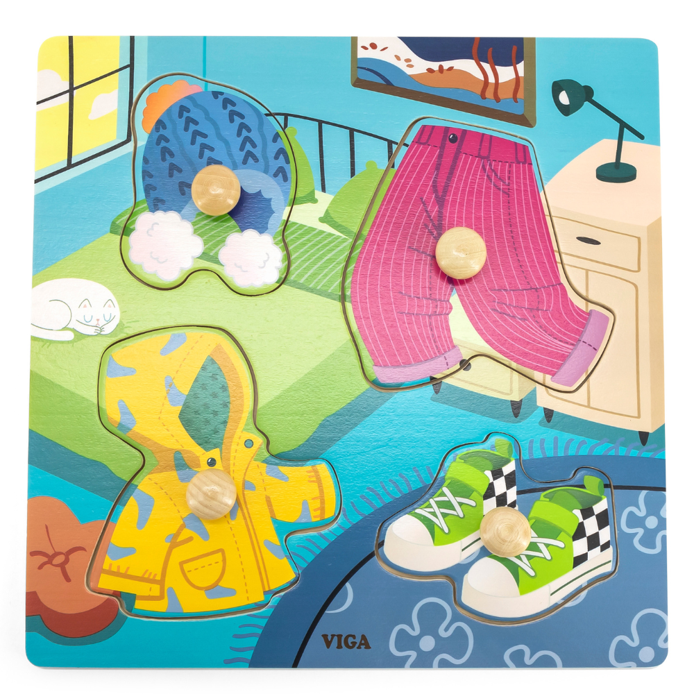 Grande sélection de puzzles éducatifs en bois dédiés aux bébés et aux jeunes enfants de 2 à 5 pièces.